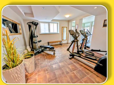 Sportlich Aktive haben im Dünenschloss außerdem die Möglichkeit, im großzügigen, gut ausgestatteten Fitnessraum (u.a. Crosstrainer, Ergometer, Laufband) zu trainieren. Die Nutzung ist für unsere Gäste kostenfrei!